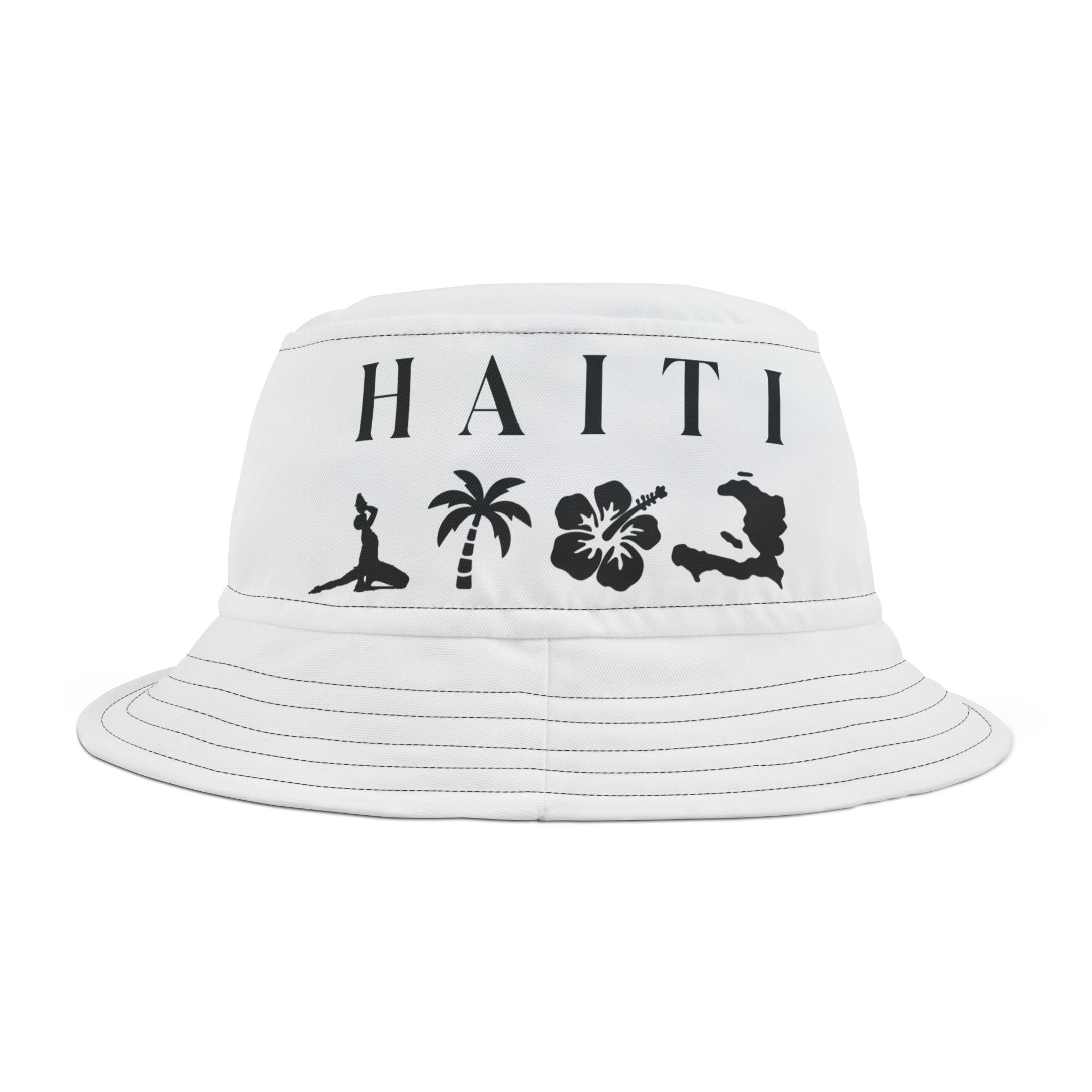 This bucket hat is more than an accessory — it’s a cultural snapshot. Every symbol is intentional: movement that echoes ancestral dances, nature that feeds and shelters us, flowers that color our traditions, and the land that holds it all. Whether you’re in Haiti or far away, wearing it keeps you connected to the island’s soul.