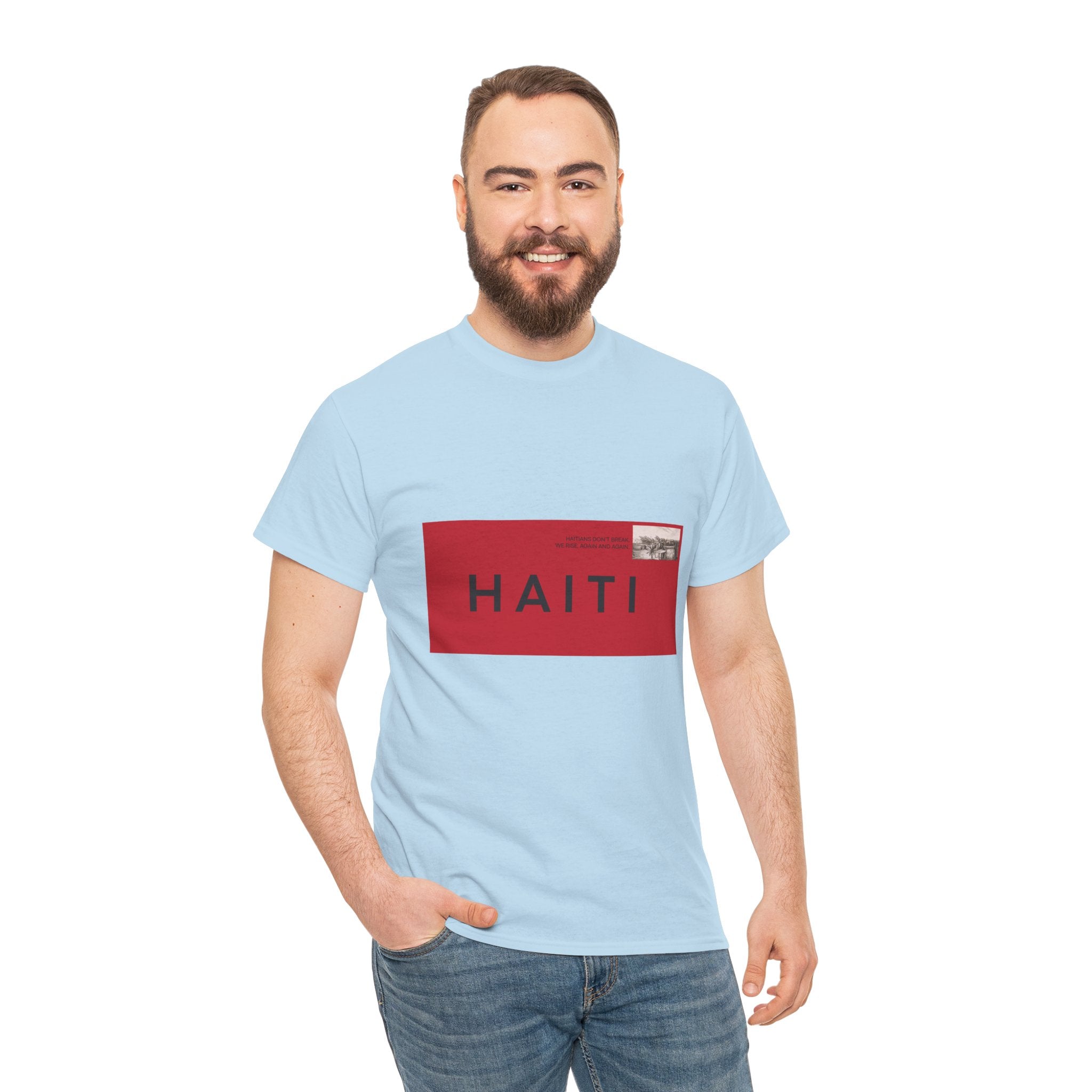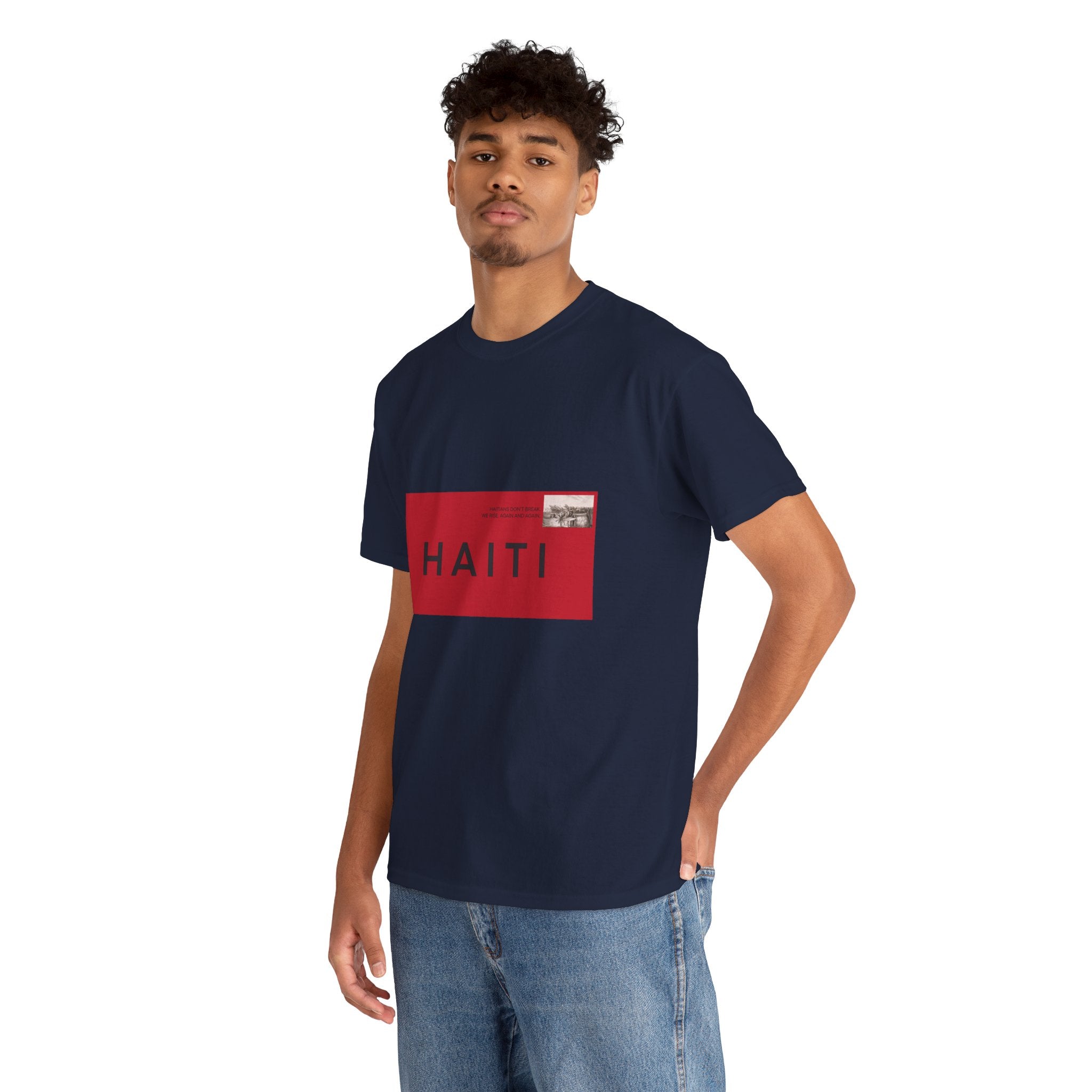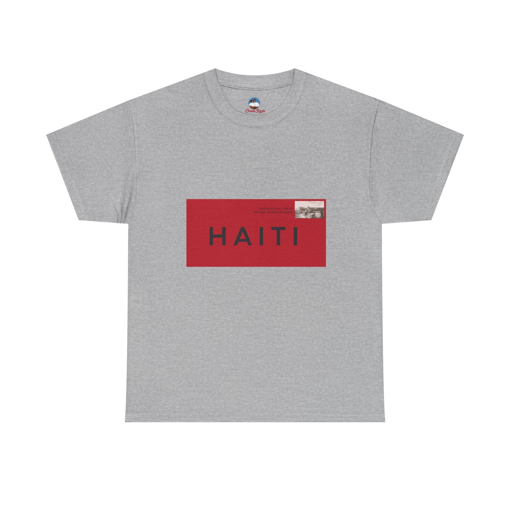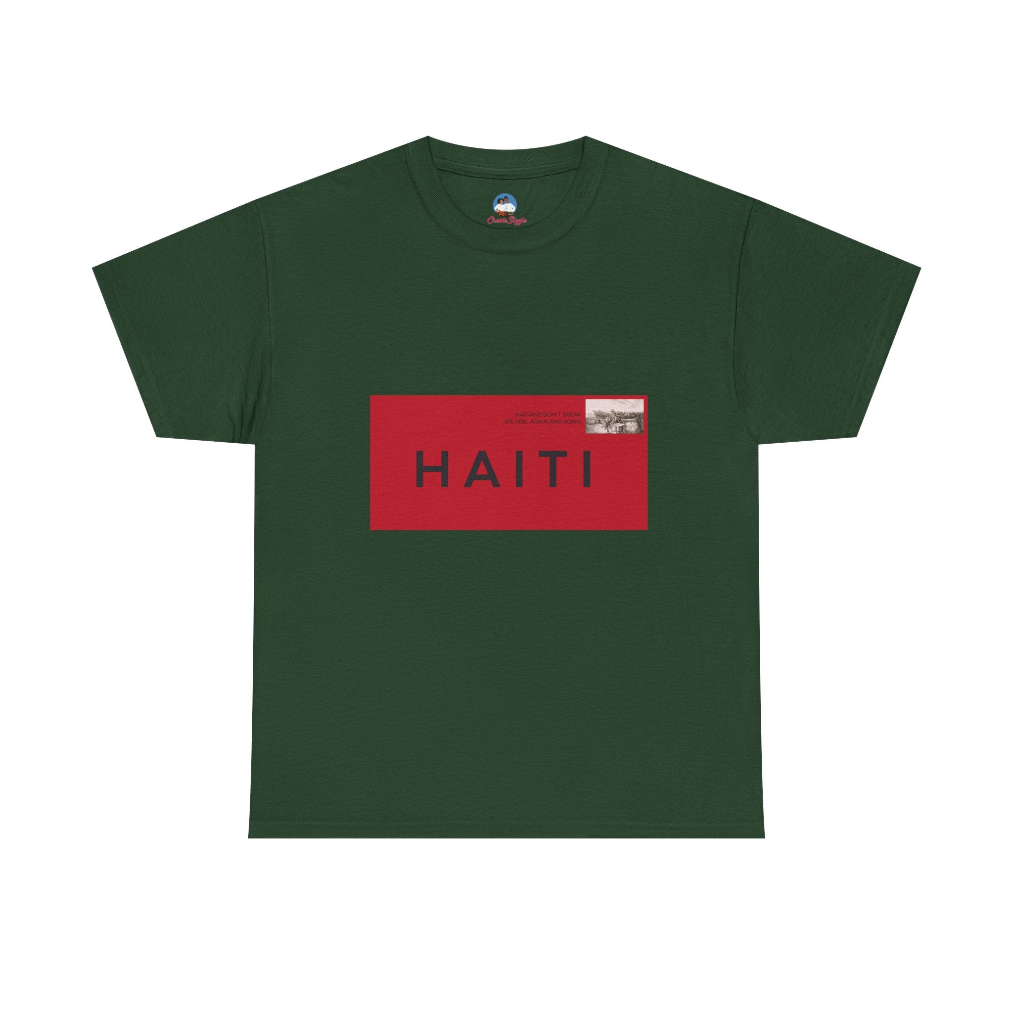 Bold, graphic, and unapologetic — this tee transforms Haiti into a seal of origin. The red-and-black postage stamp design is crisp and modern, yet rooted in nostalgia, evoking the letters, care packages, and love sent across oceans. For the Haitian diaspora, it’s a wearable passport stamp — a reminder that no matter where you are, Haiti is stamped on you.