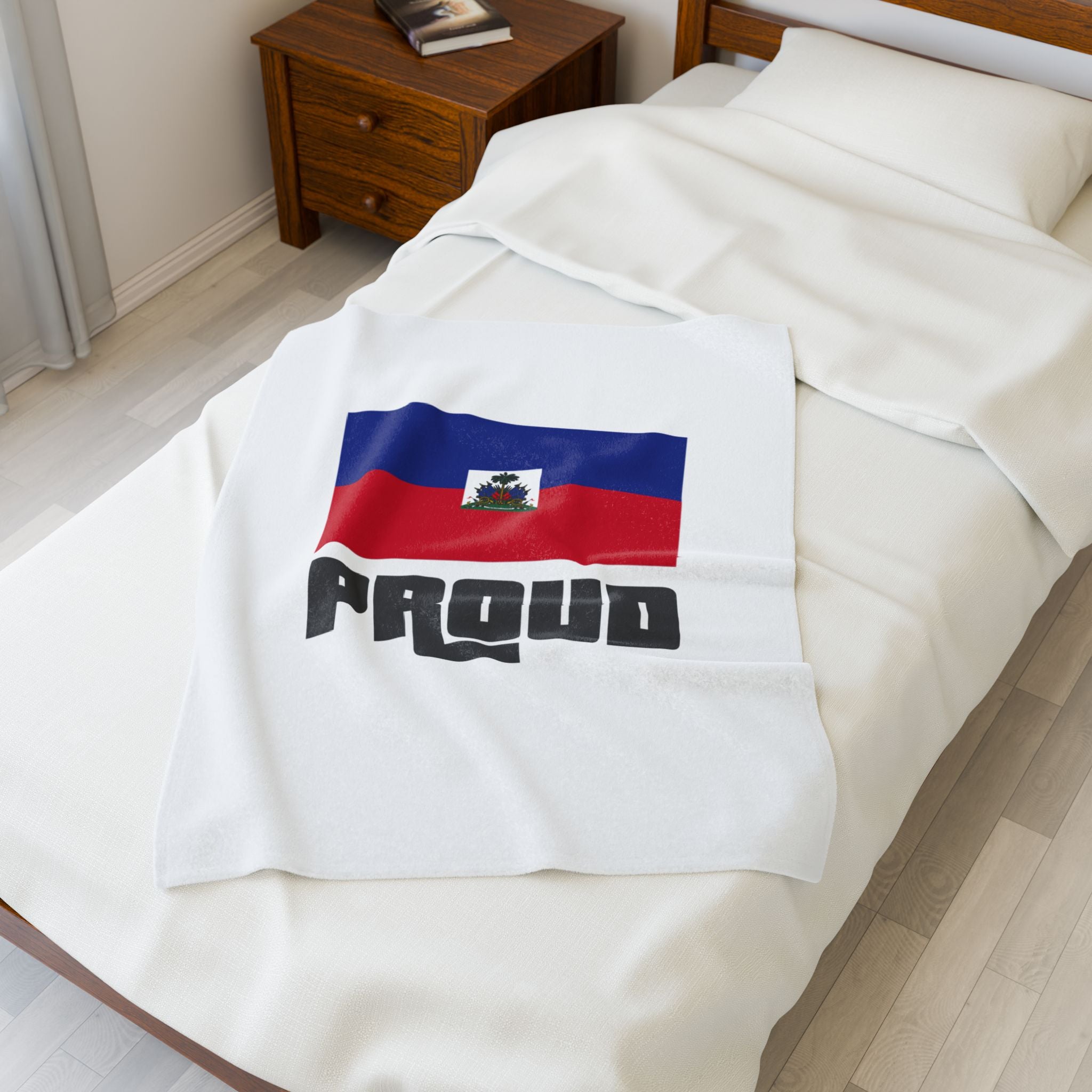 This premium plush blanket fuses the timeless beauty of the Haitian flag with the edge and attitude of street culture. Featuring the iconic red and blue flag with its intricate coat of arms, the design is anchored by the bold word “Proud” in a street-art-inspired font — a nod to modern gaming culture and urban artistry.