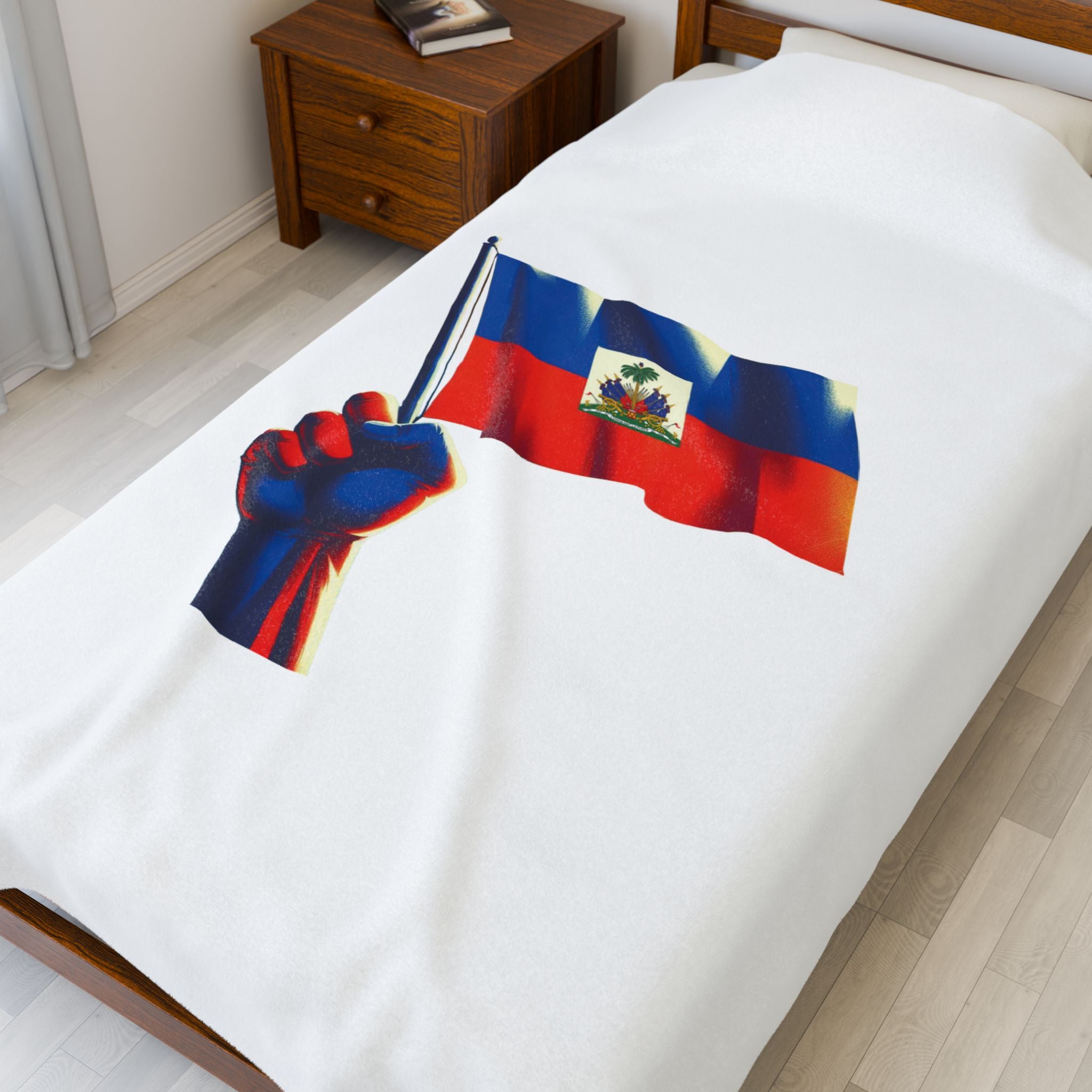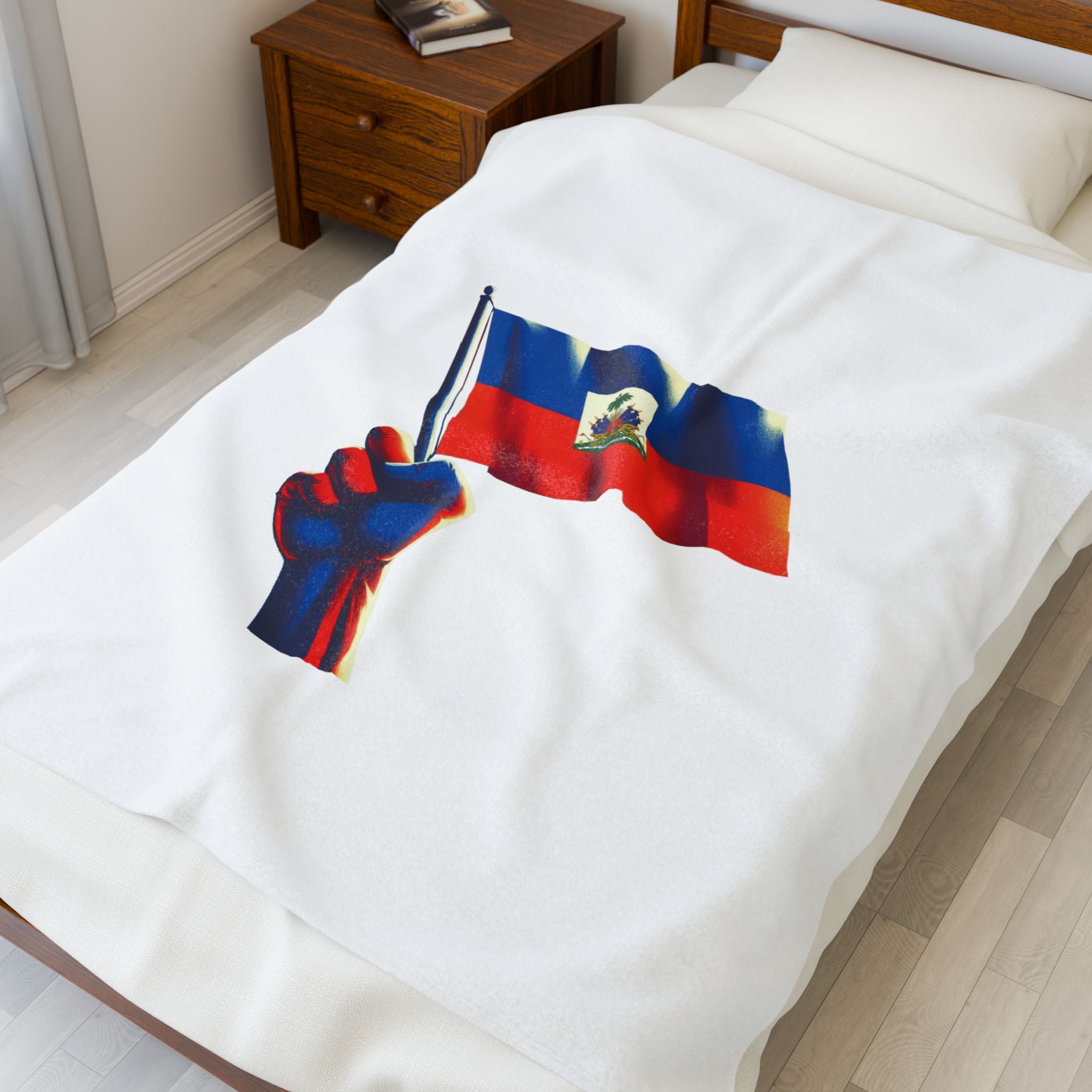 The Haitian Flag Raised Fist Plush Blanket captures one of the most enduring symbols of freedom: a strong hand gripping the flag of Haiti, raised high for the world to see. The image radiates power, dignity, and unshakable pride — a visual story of resilience through centuries of struggle and triumph.