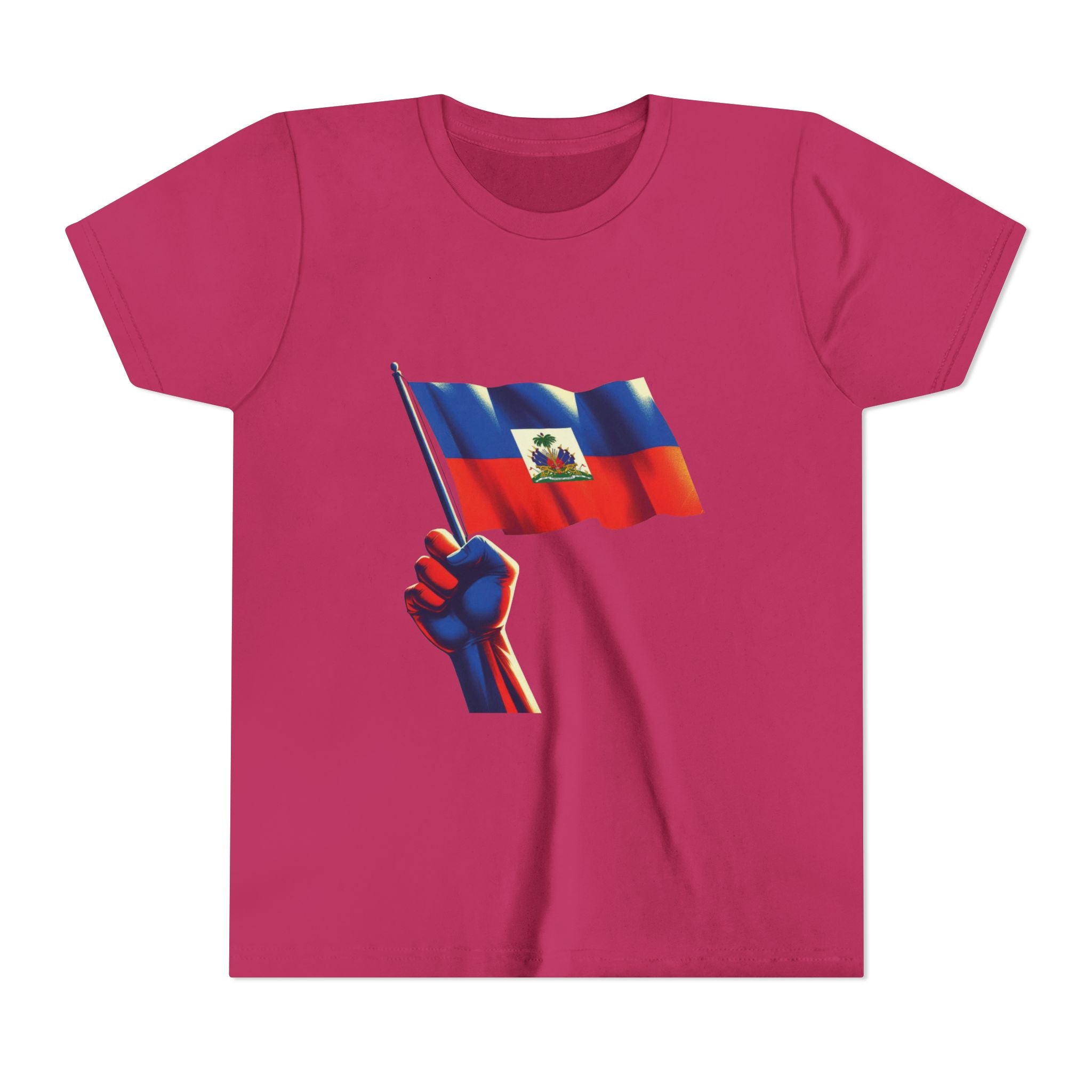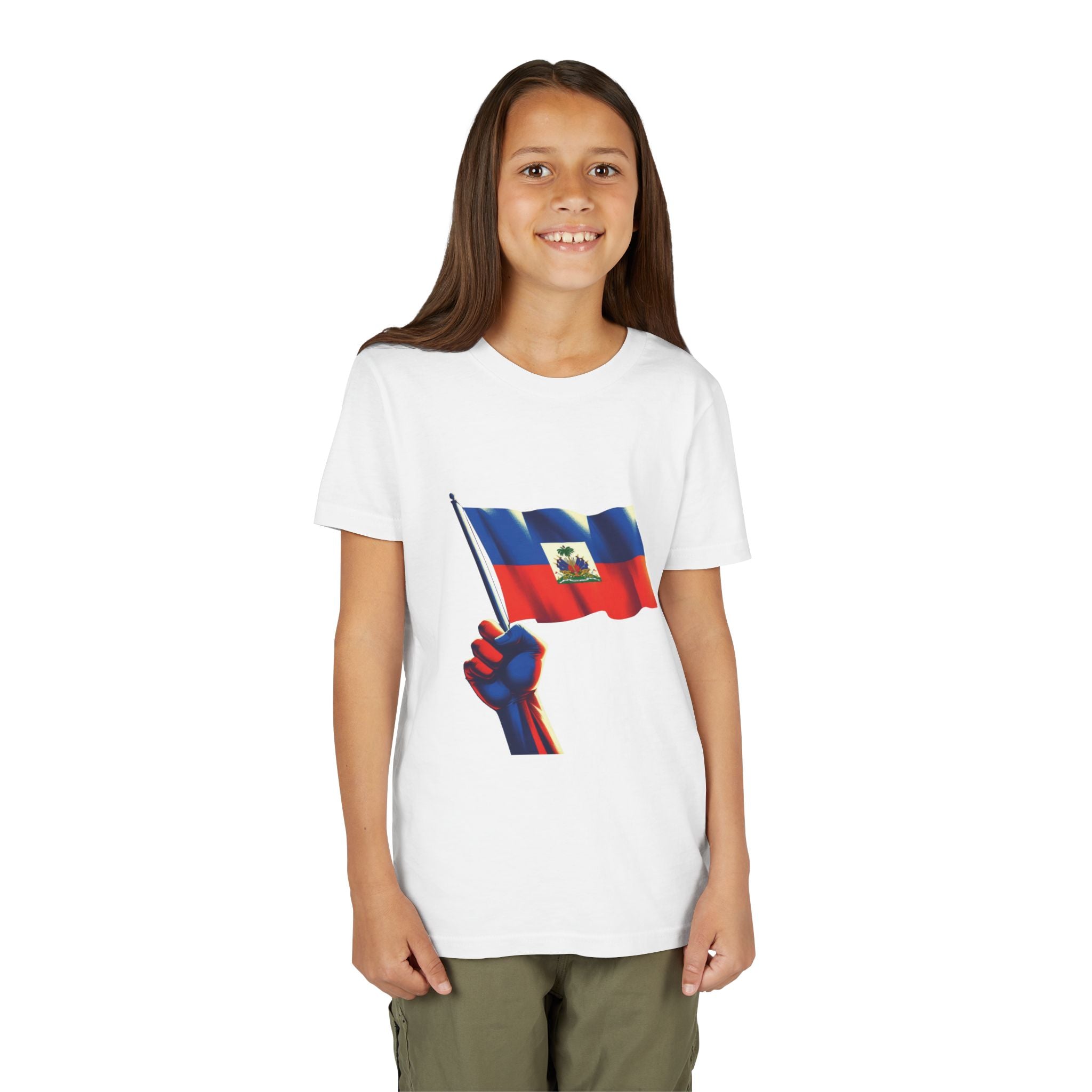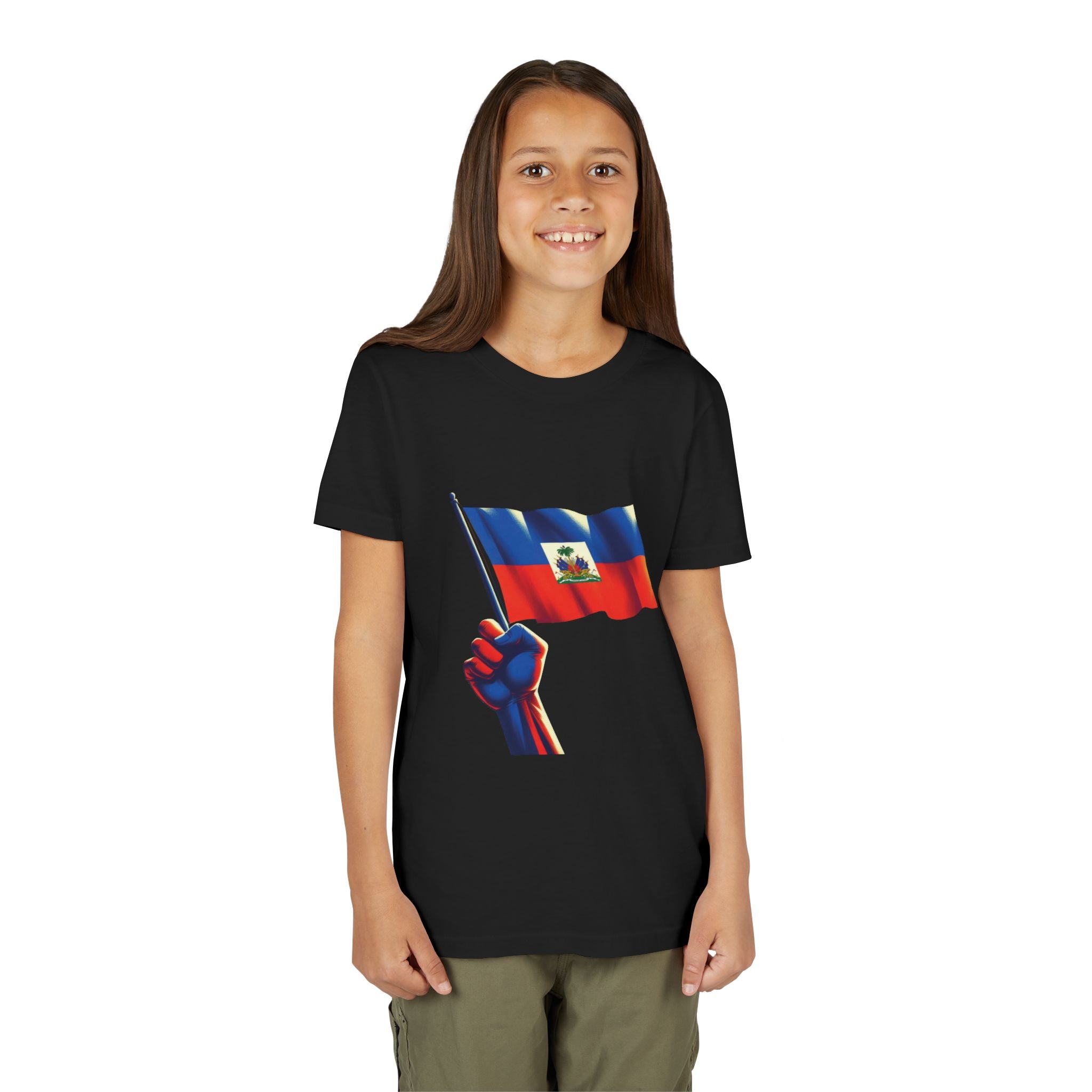 For the young ones who carry their nation in their hearts. The Haitian Flag Youth Tee features one of the most stirring symbols of pride and resilience — a strong fist holding the Haitian flag high. The design radiates empowerment: the hand, marked by struggle yet unyielding, grips the flag as it waves with dignity and strength. This bold artwork is more than a graphic — it’s a wearable revolution, a call to stand tall, claim identity, and never let go of heritage.