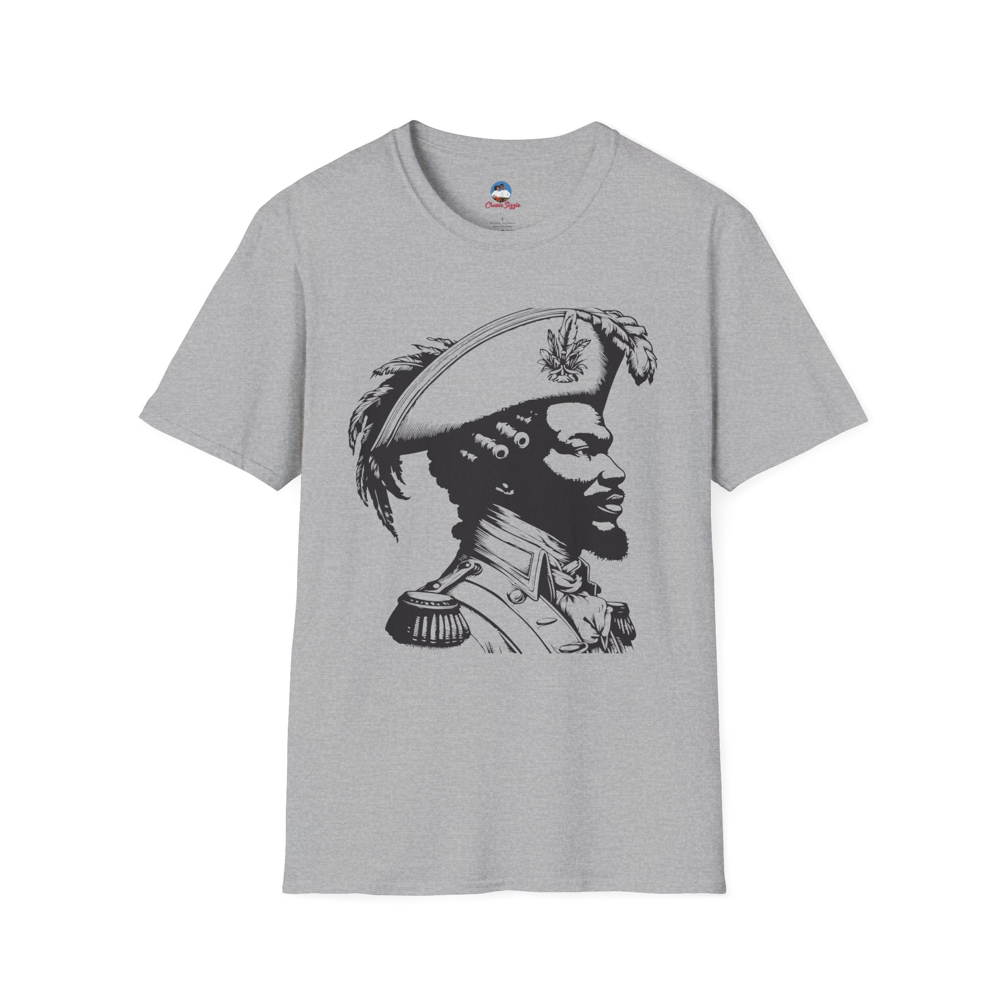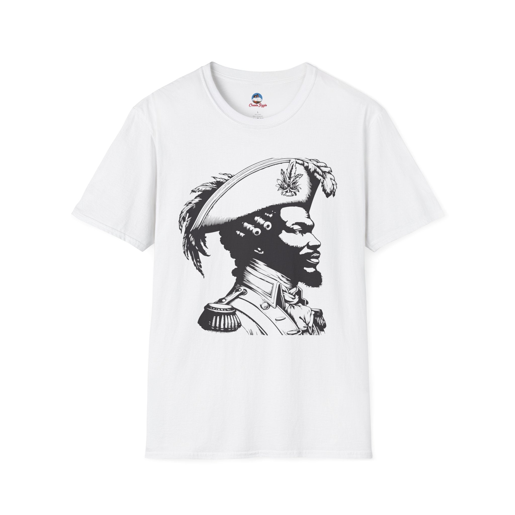 This commanding side-profile portrait pays homage to the brilliant minds of Haiti’s independence — the tacticians whose discipline and intellect turned dreams of freedom into reality. Inspired by legendary leaders such as Toussaint Louverture and Jean-Jacques Dessalines, the design blends military precision with quiet defiance, reminding us that revolutions are won not only on battlefields, but in the minds of visionaries.