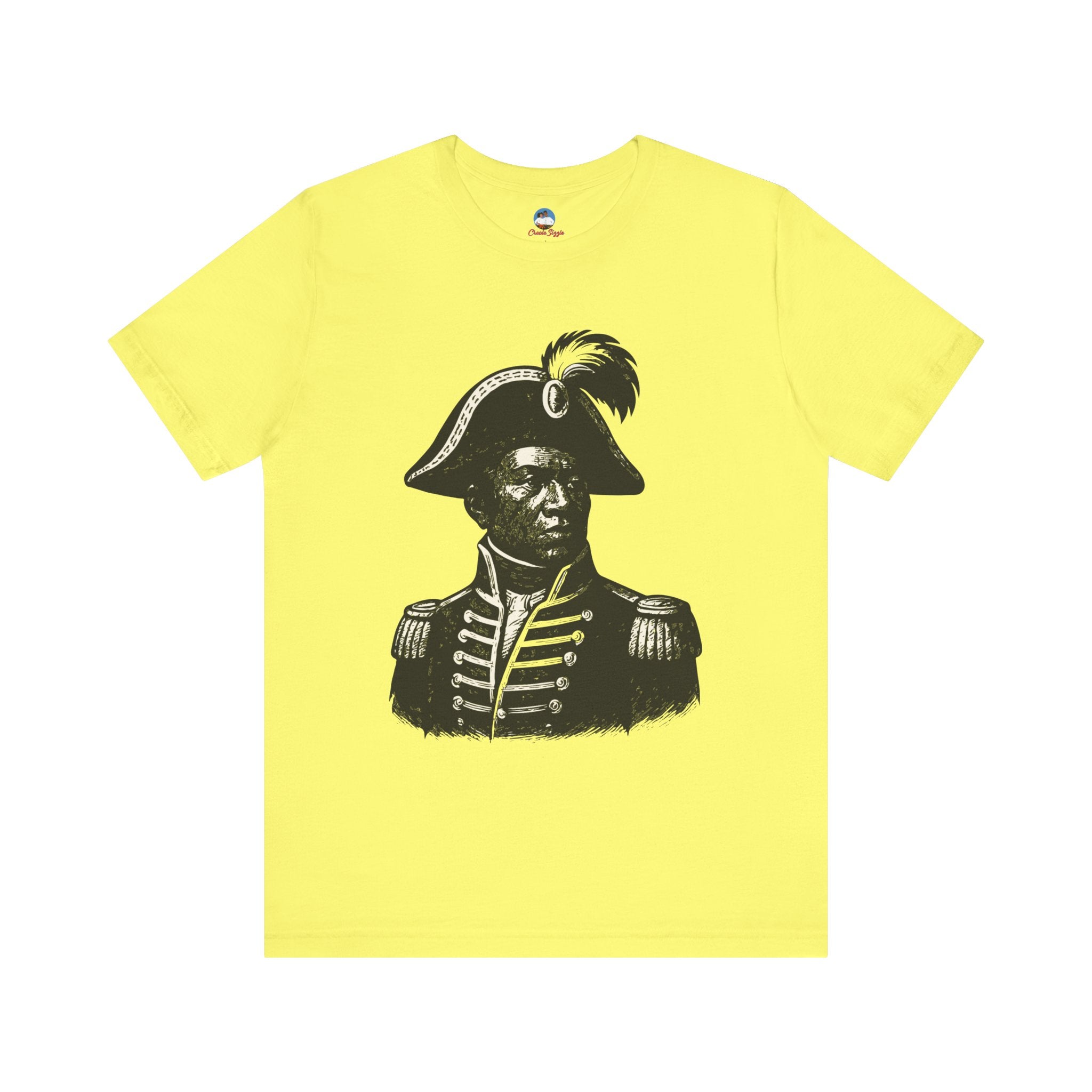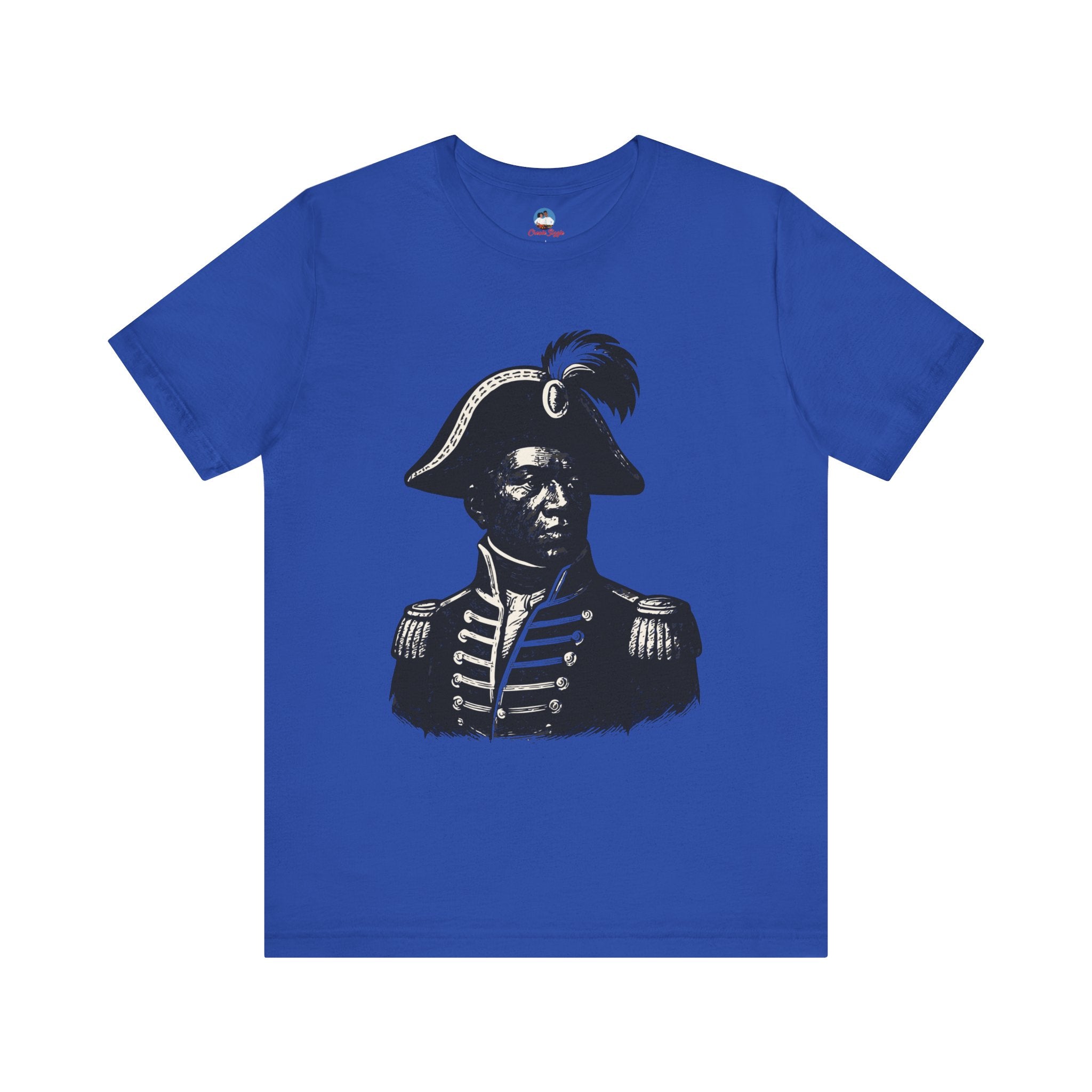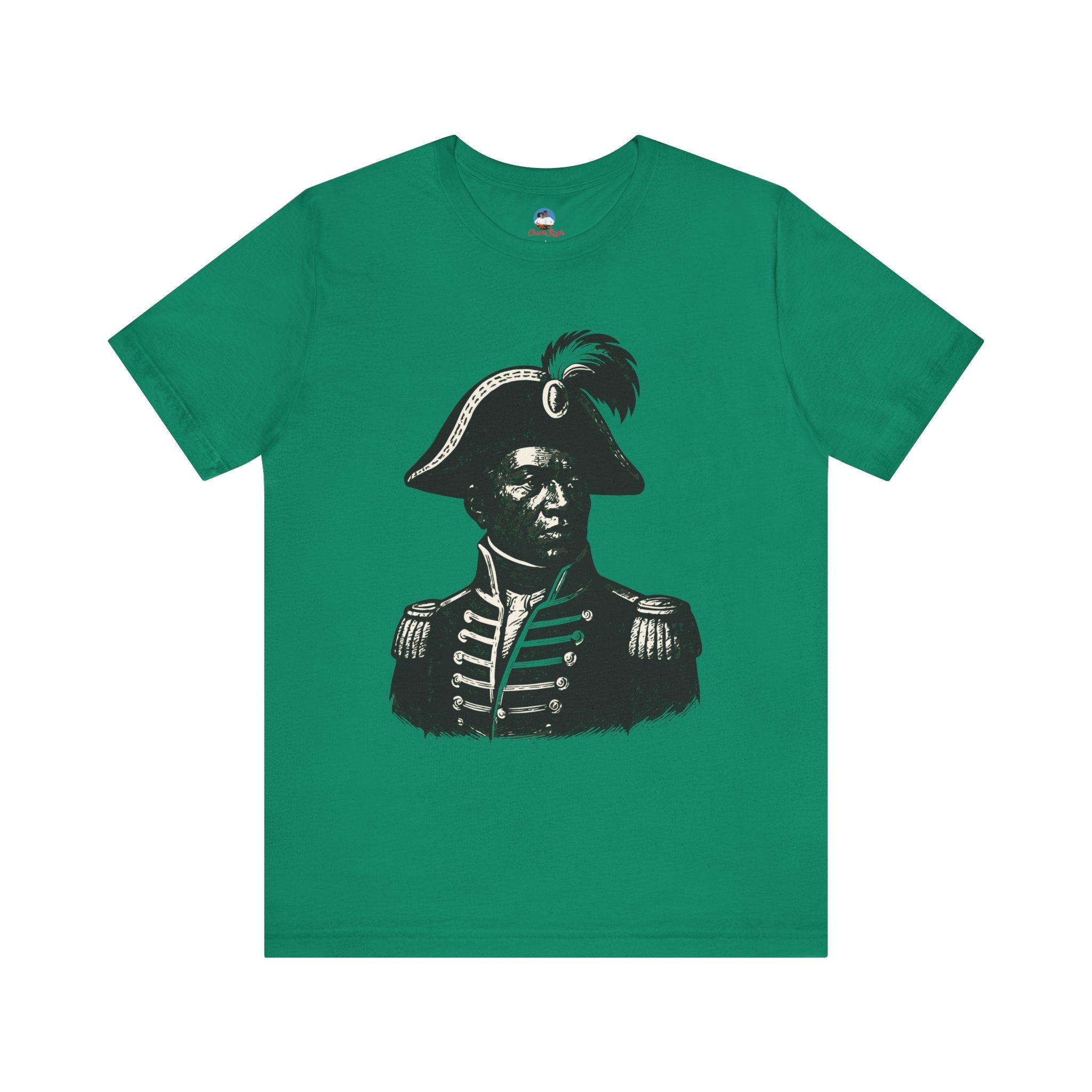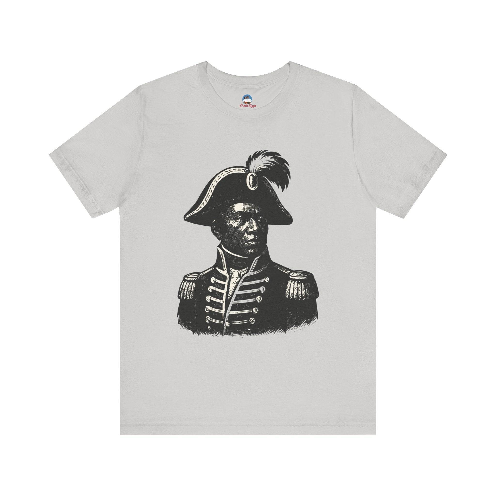 This striking black-and-white portrait — possibly of revolutionary leader Toussaint Louverture — captures the courage, discipline, and vision that shaped Haiti’s history. The eyes meet yours in a silent challenge: honor the past through action. More than just apparel, this tee is a living link to ancestral power, leadership, and the unbreakable spirit of the Haitian people.