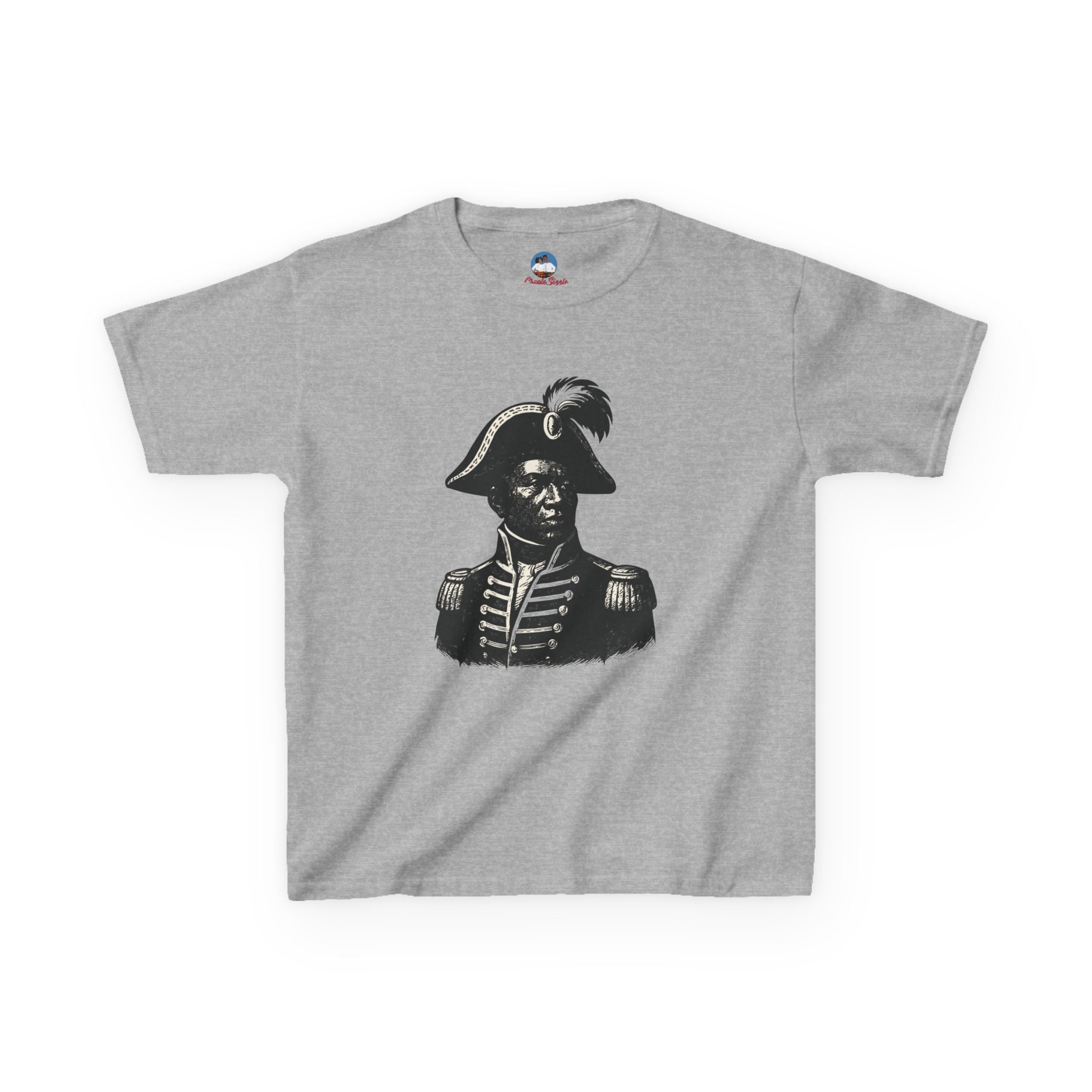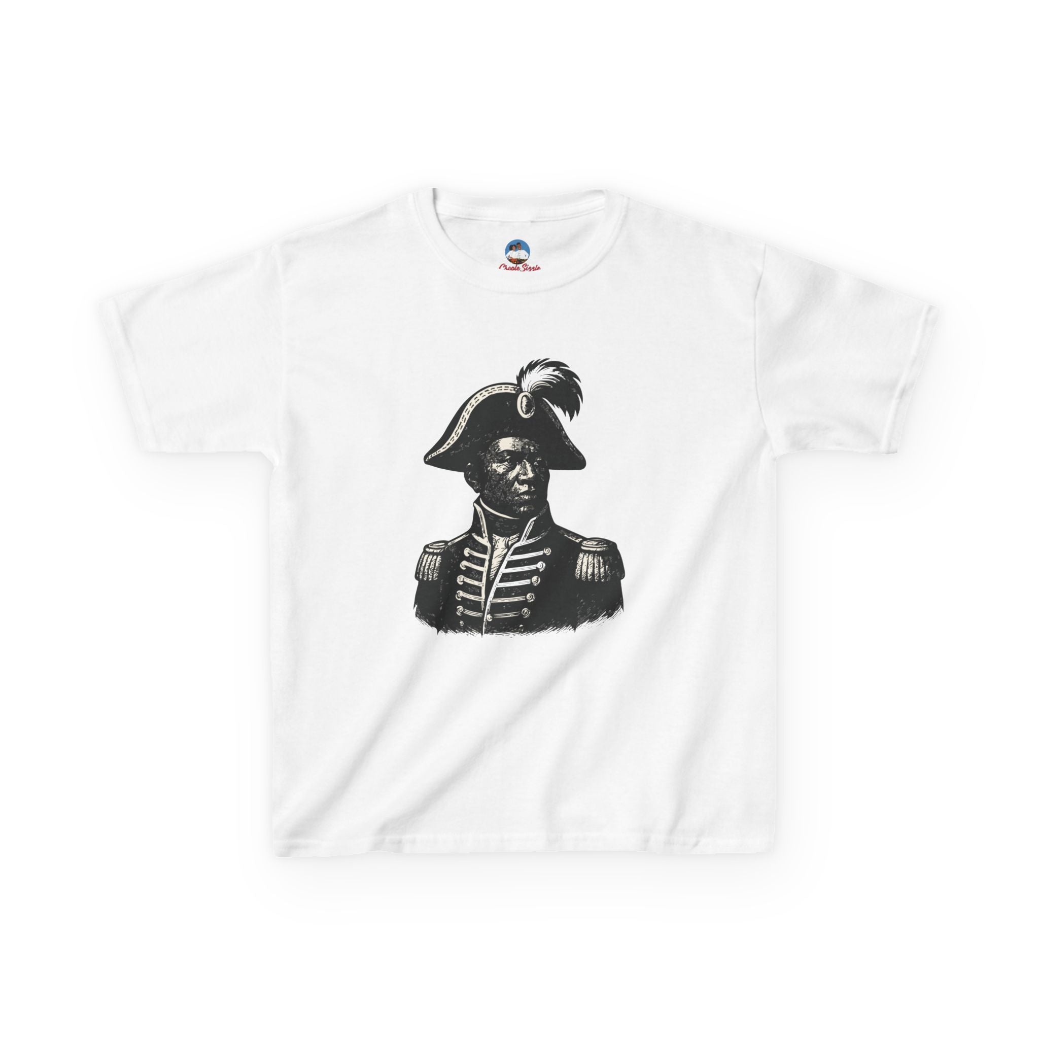 For the children who carry history on their shoulders. The Historical Kids Tee features a striking black-and-white portrait inspired by Haiti’s revolutionary leaders — a bold salute to vision, discipline, and sacrifice. With eyes that seem to look directly at the viewer, this artwork challenges the next generation to honor the past and draw strength from ancestral power. In Haitian culture, looking back is not weakness — it’s where resilience, courage, and leadership begin. Wearing this tee means carrying a legacy, not just a design.