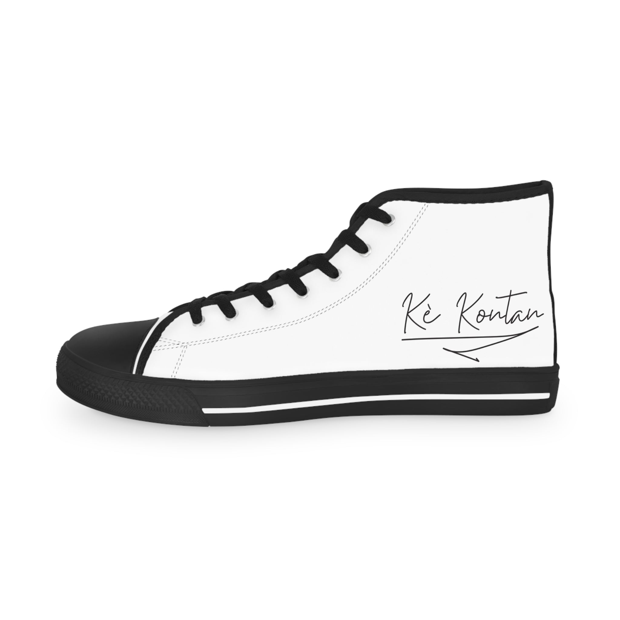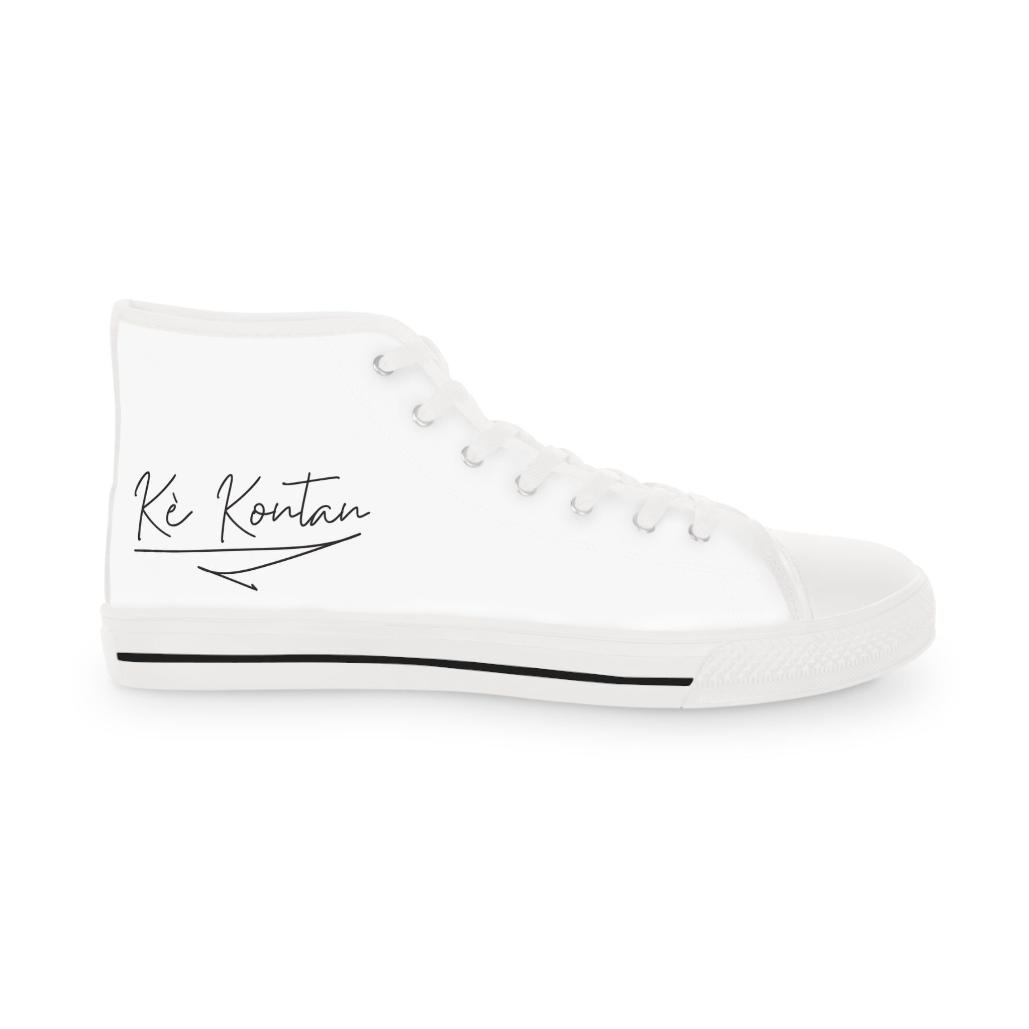 “Kè Kontan” means Happy Heart in Kreyòl. More than words, it’s an expression of resilience and joy carried by Haitians across generations. These high-top sneakers take that phrase and bring it to life — minimal, elegant, and powerful. Every step you take carries the essence of Haitian optimism, strength, and pride.
