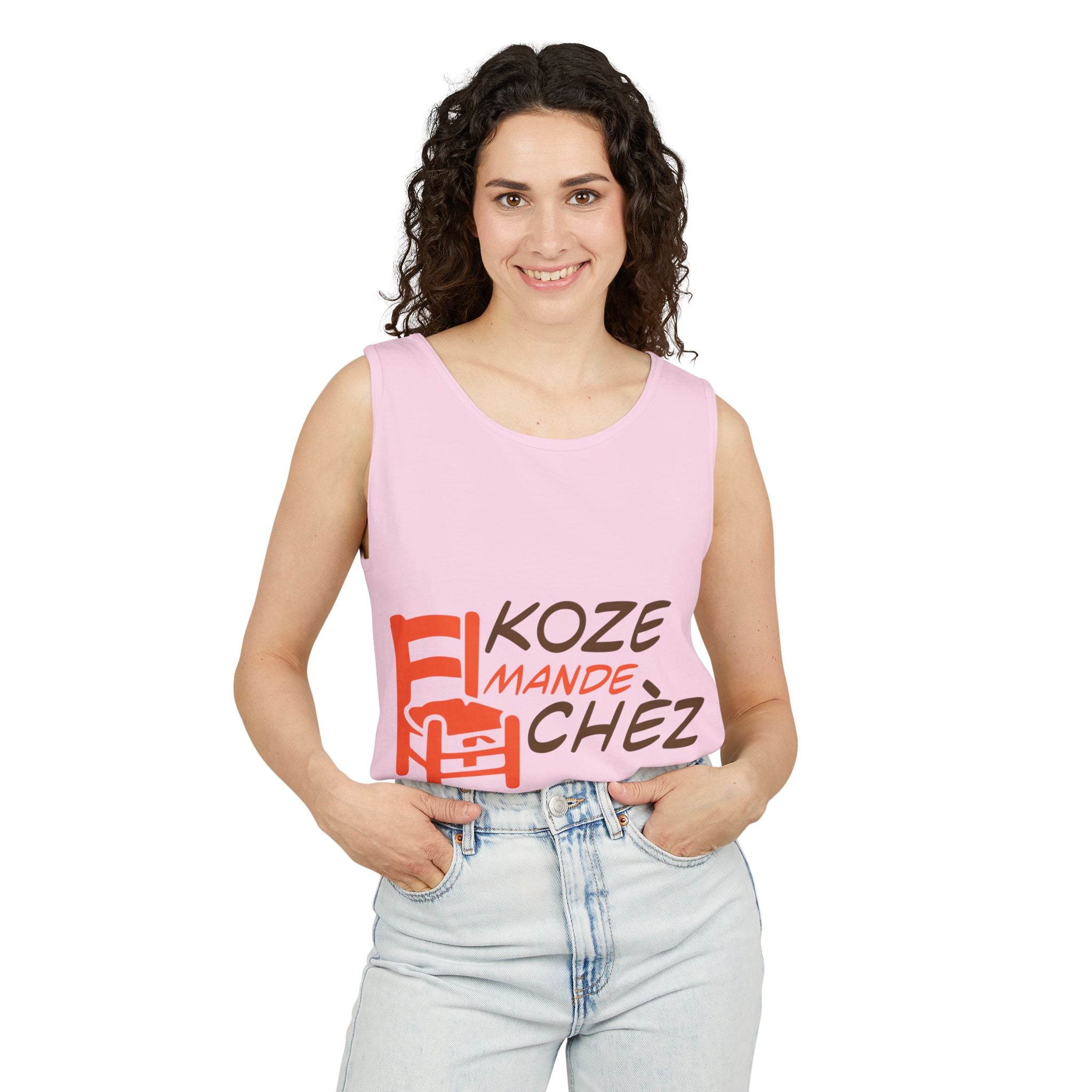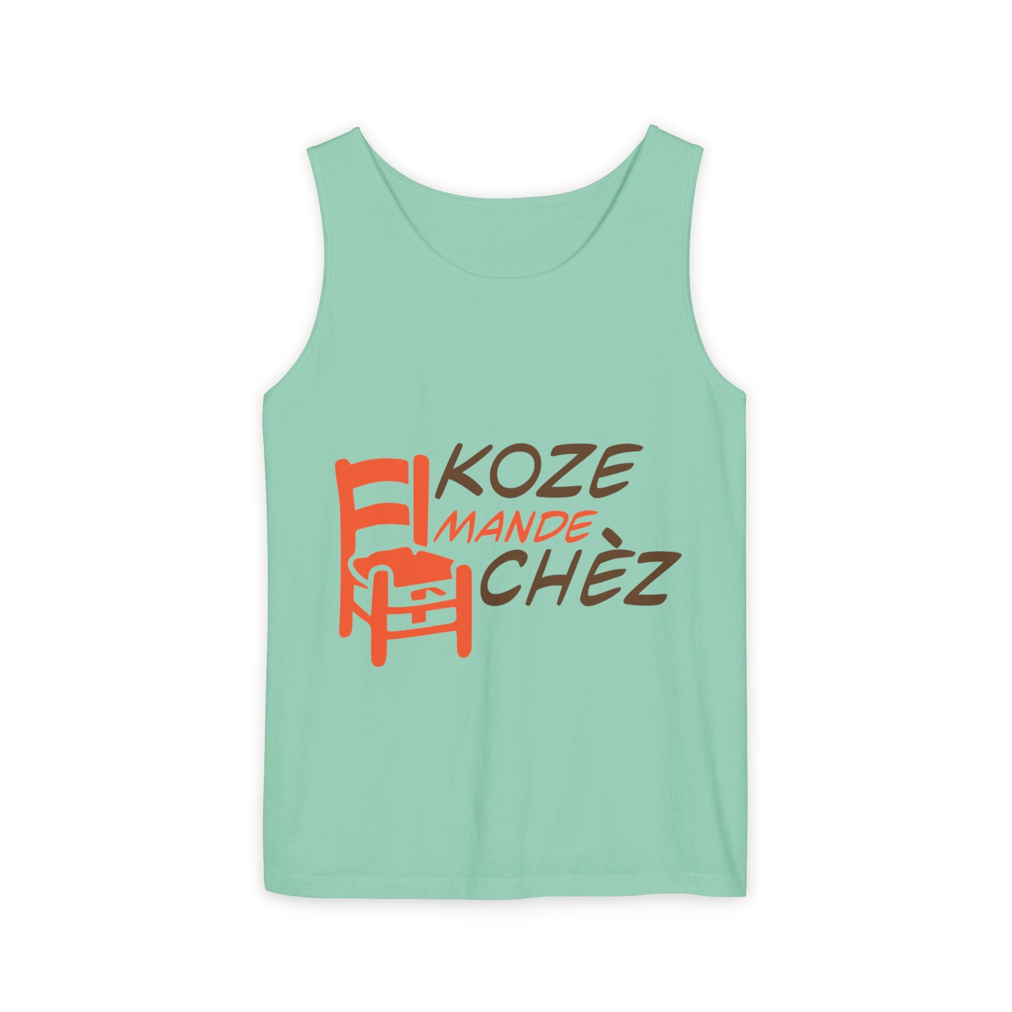 Koze Mandé Chèz Pastel Creole Gossip Tank Top Fun Haitian Saying Unisex Garment-Dyed Summer Shirt