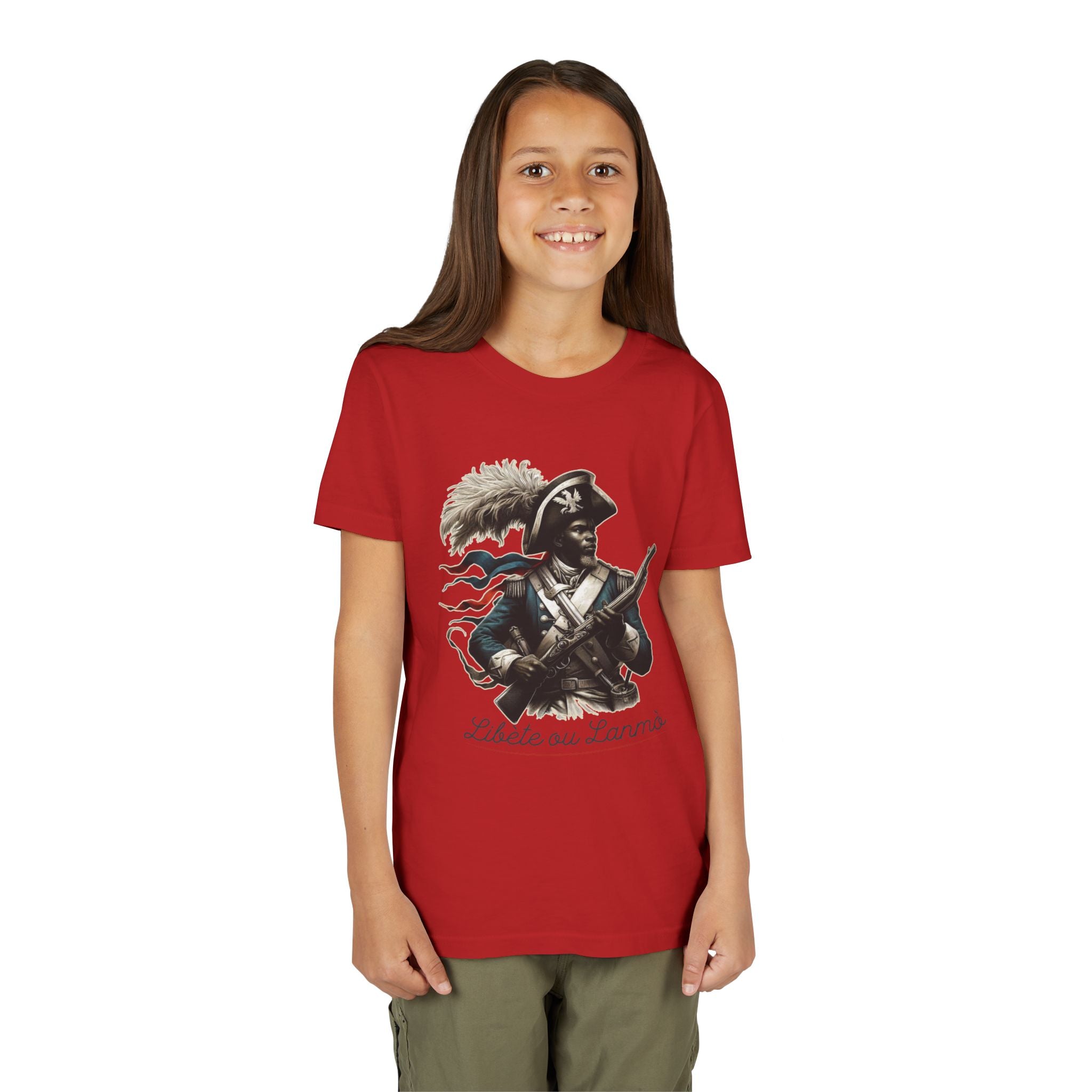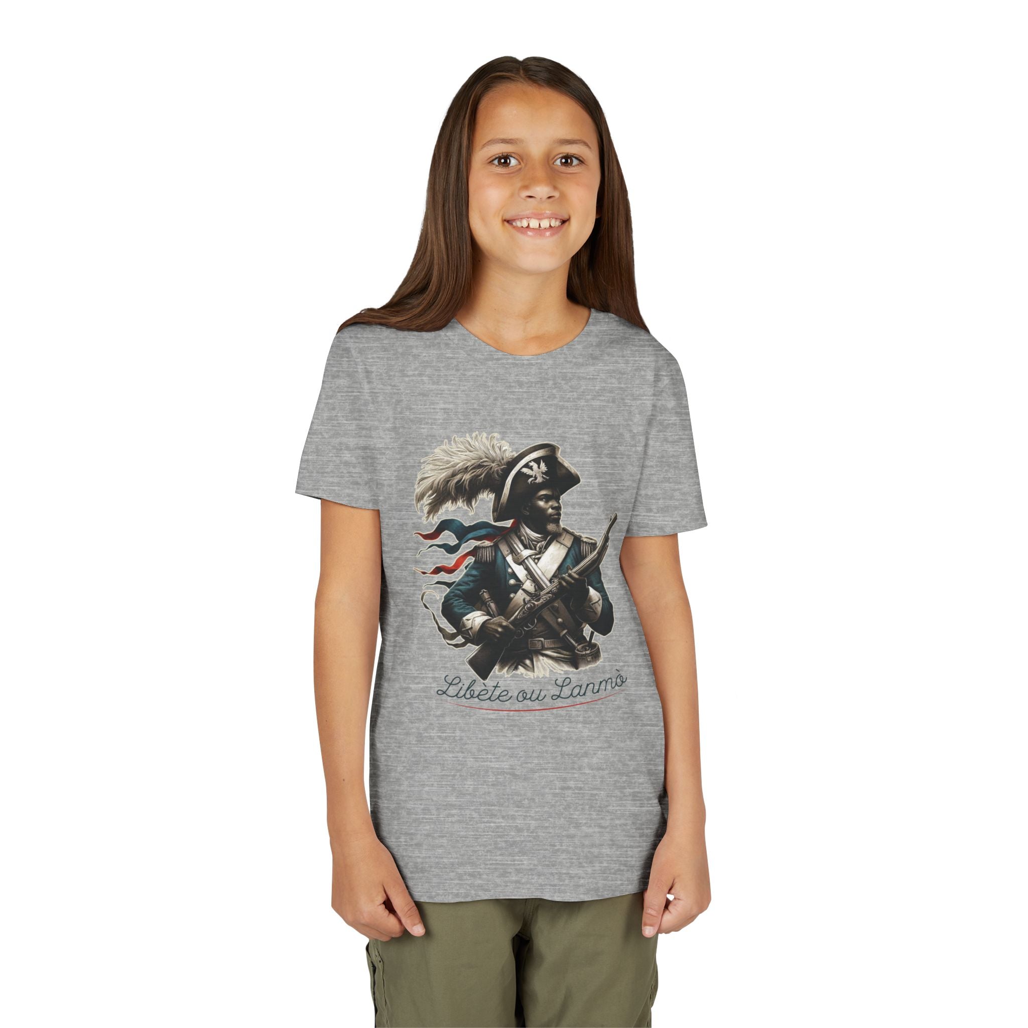 For the young rebels who inherit a fearless legacy. The Liberté ou La Mort Youth Tee is more than clothing — it’s a declaration of courage and pride. Featuring a powerful illustration of a revolutionary soldier framed by a banner that reads “Liberté ou La mort” (Liberty or Death), this design recalls the sacrifices made by Haiti’s ancestors who chose dignity over surrender. Waves of color radiate around the determined figure, capturing the fire of freedom that still burns today.