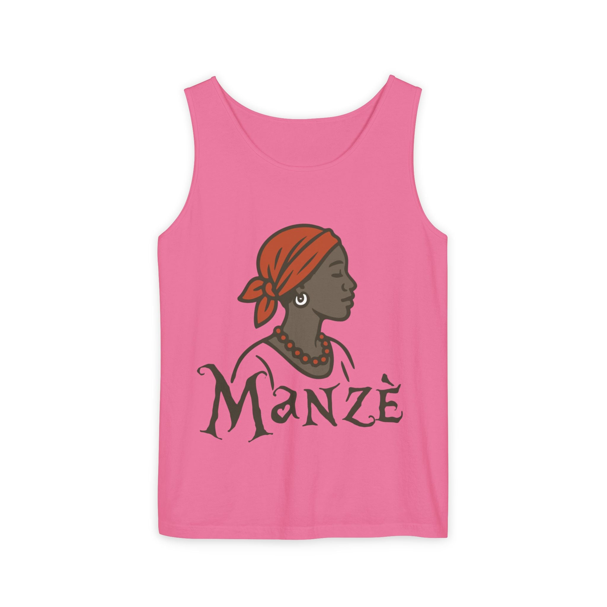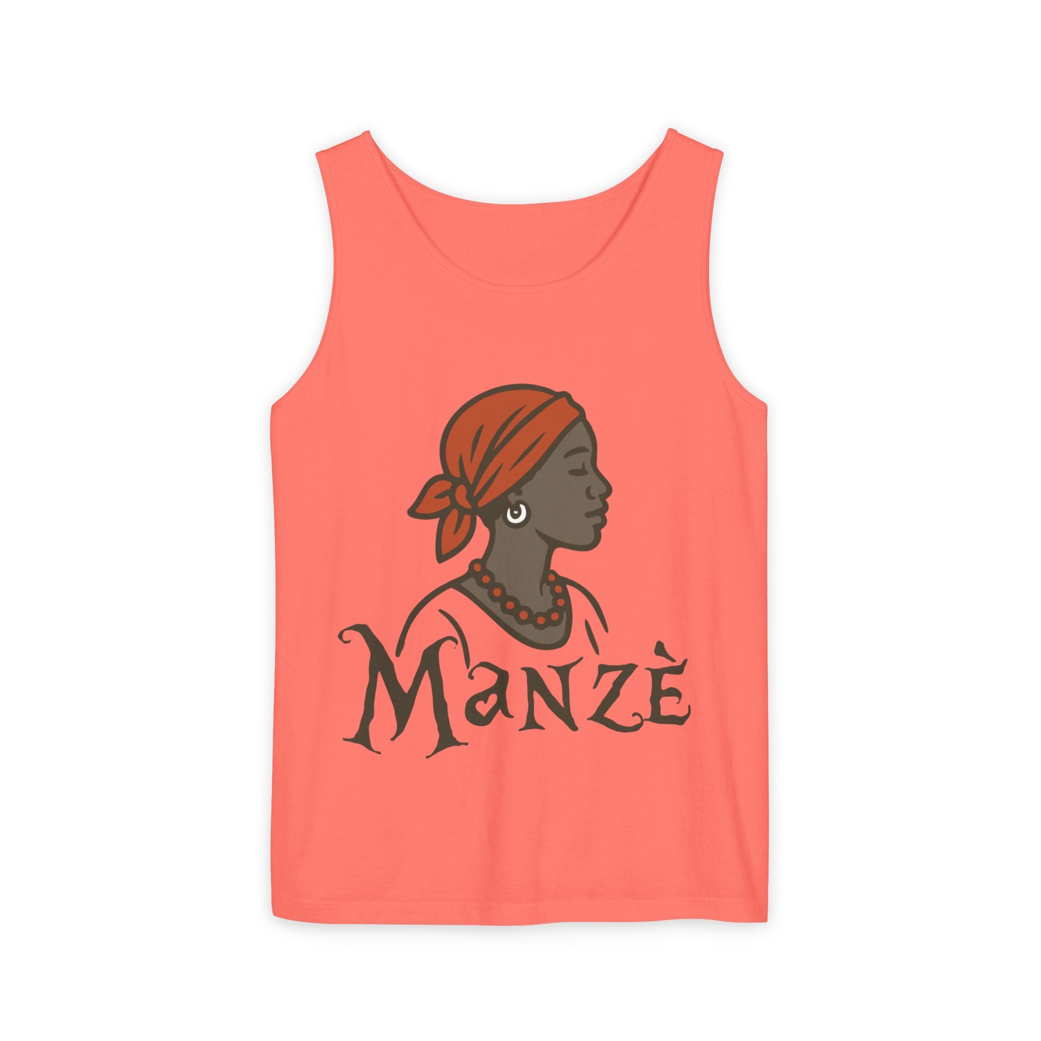 Celebrate strength, heritage, and unapologetic pride with the Mazè Tank Top. Featuring the stylized face of a confident Haitian woman paired with the word Mazè — Creole for woman or girl — this bold design pays tribute to the backbone of Haiti: its women. From daughters and mothers to matriarchs who carry the nation forward, this piece honors their resilience, beauty, and influence.