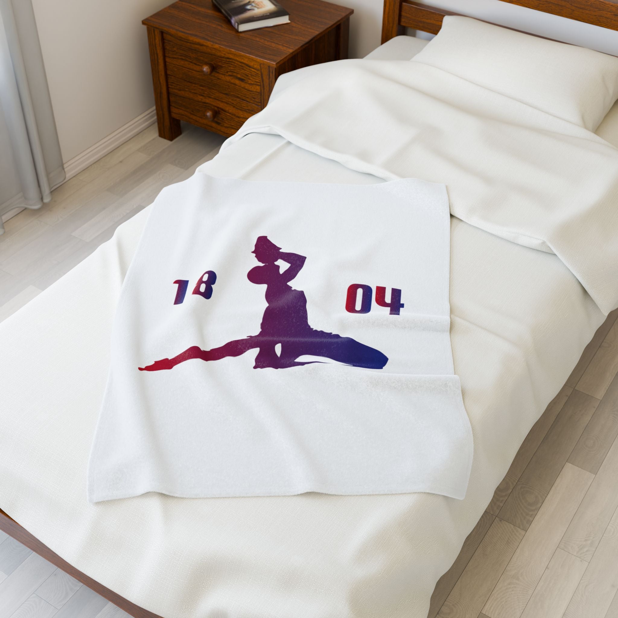 This kneeling profile of the Neg Marron, horn raised to summon freedom, rendered in deep shadows and bold “1804” numerals, embodies the spirit of Haiti’s revolutionary legacy. Transformed into a velvety blanket, it serves as both a functional comfort and a powerful symbol of ancestral defiance.