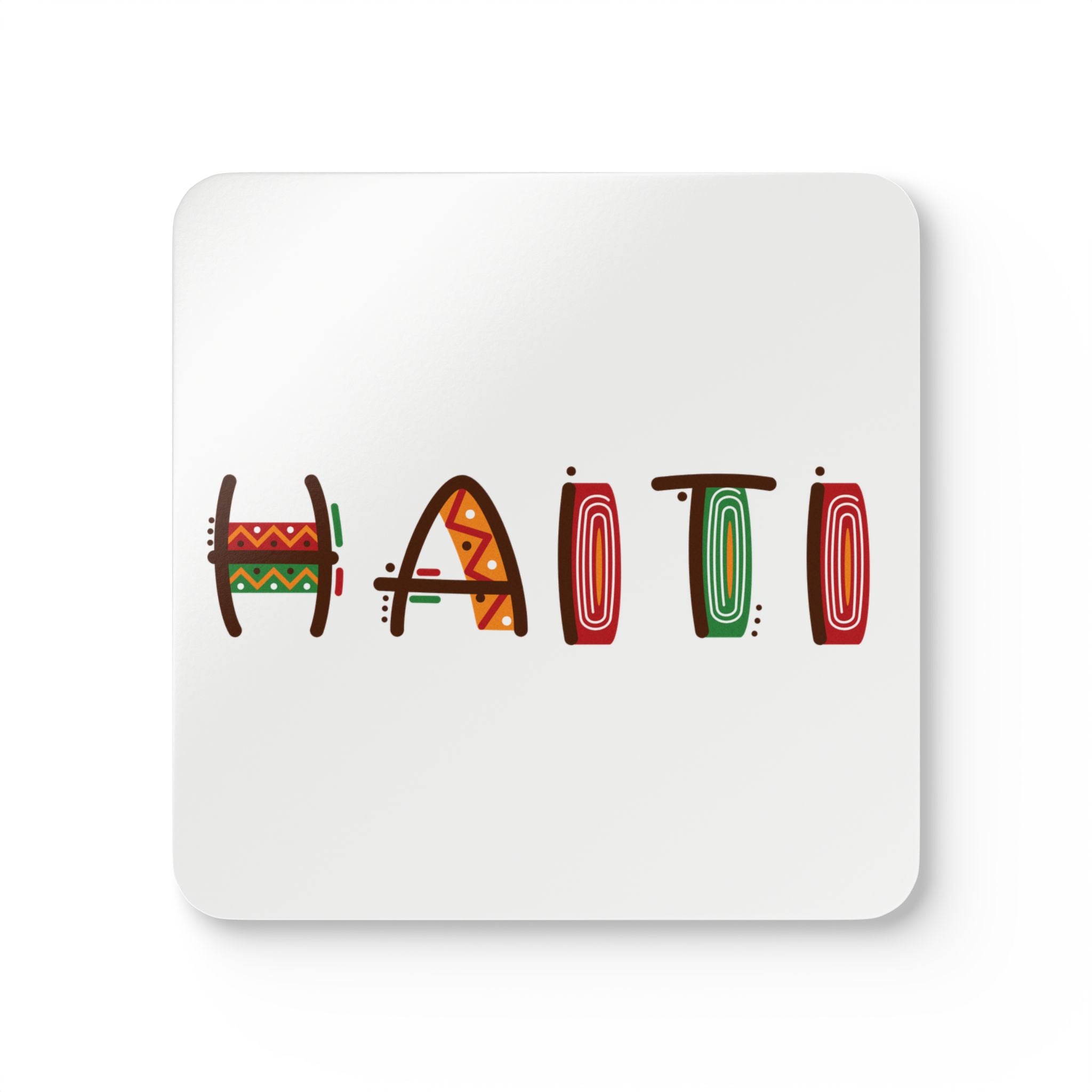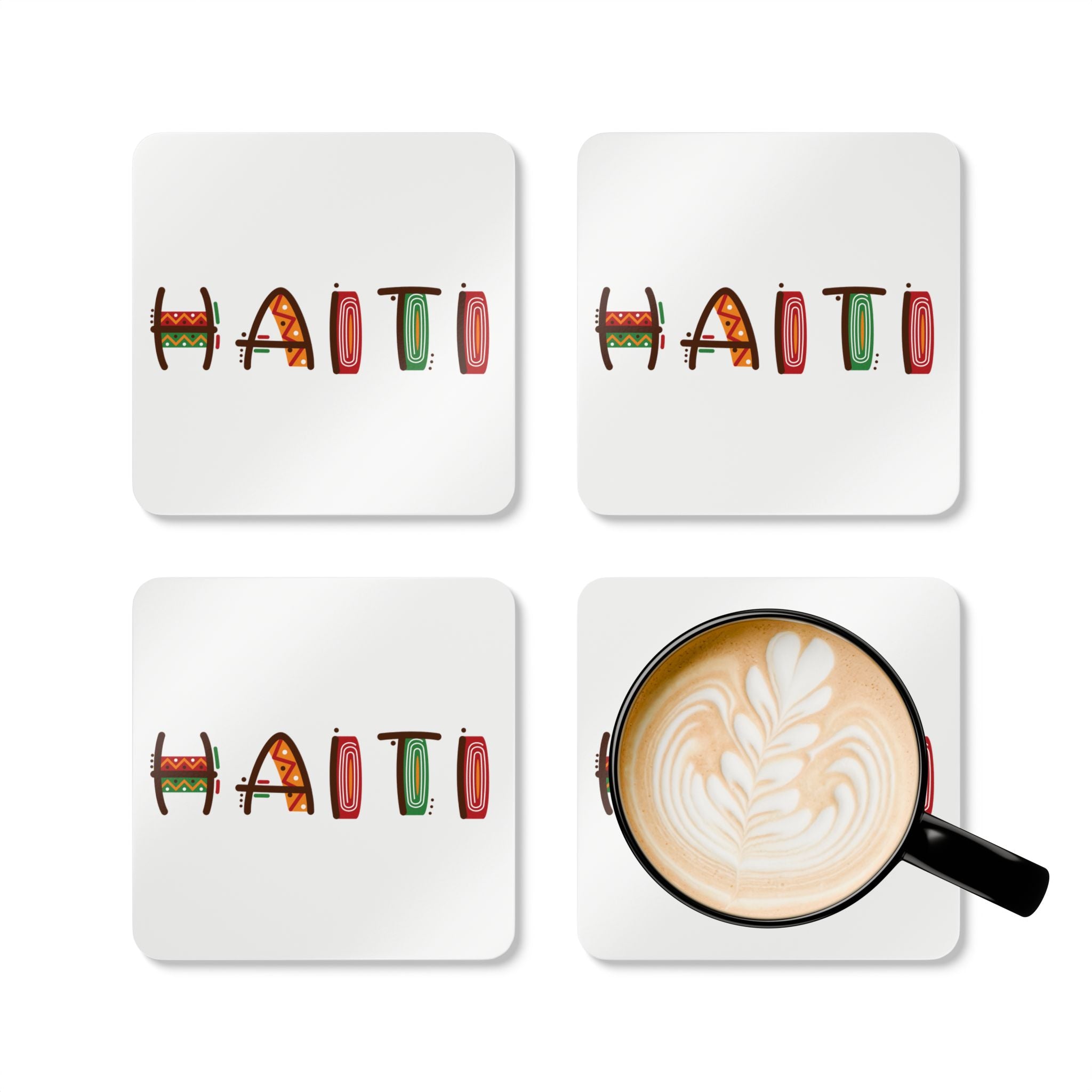 Each coaster in this vibrant set spells ‘Haiti’ in a bold and artistic font that channels the very soul of the island. Inspired by our African roots (racine nou avèk afrik), each letter is a unique piece of art, pulsating with the rhythm of lakou gatherings and the driving beat of rara bands. It's a visual celebration of life for your living space, designed to radiate love and pride (lanmou ak fyète).