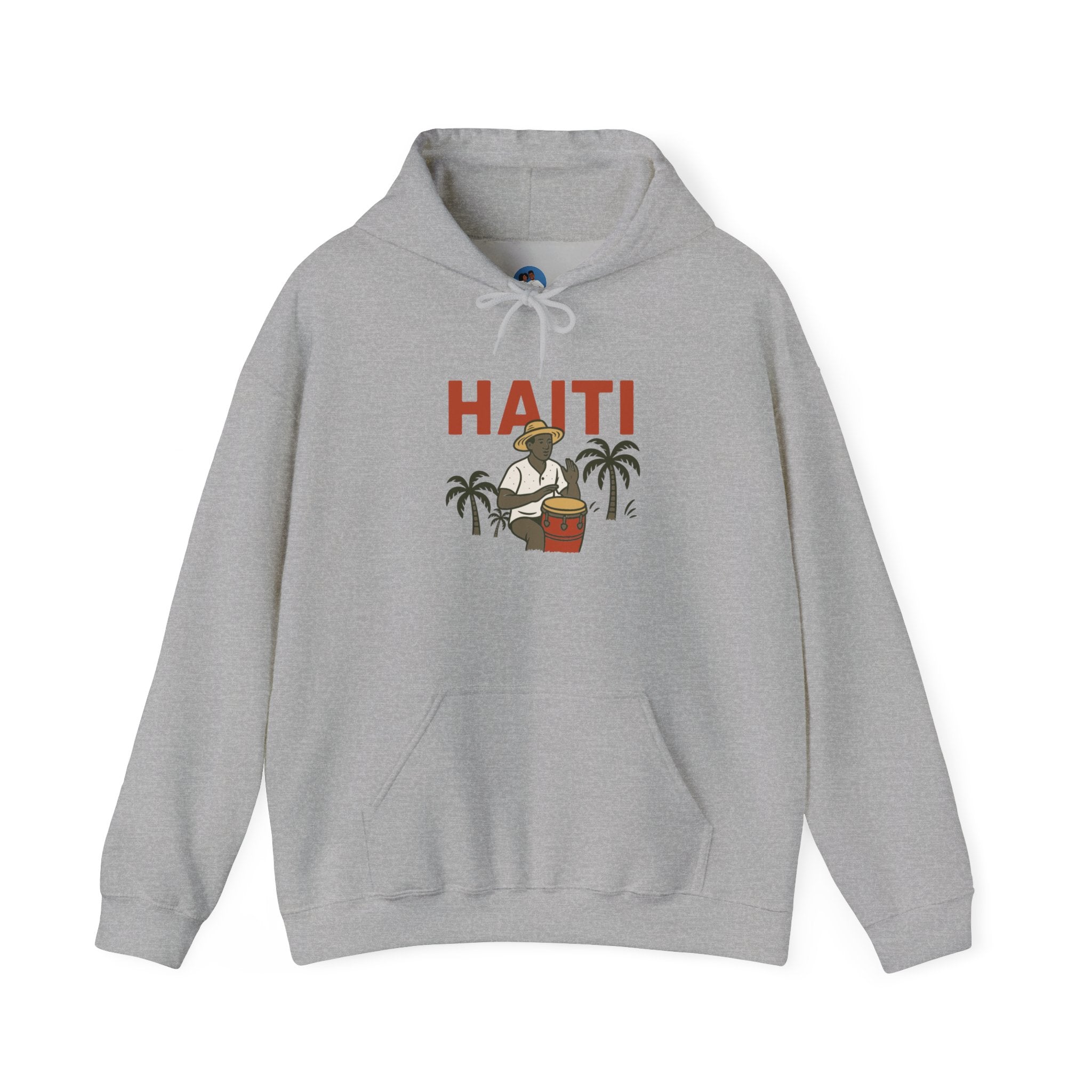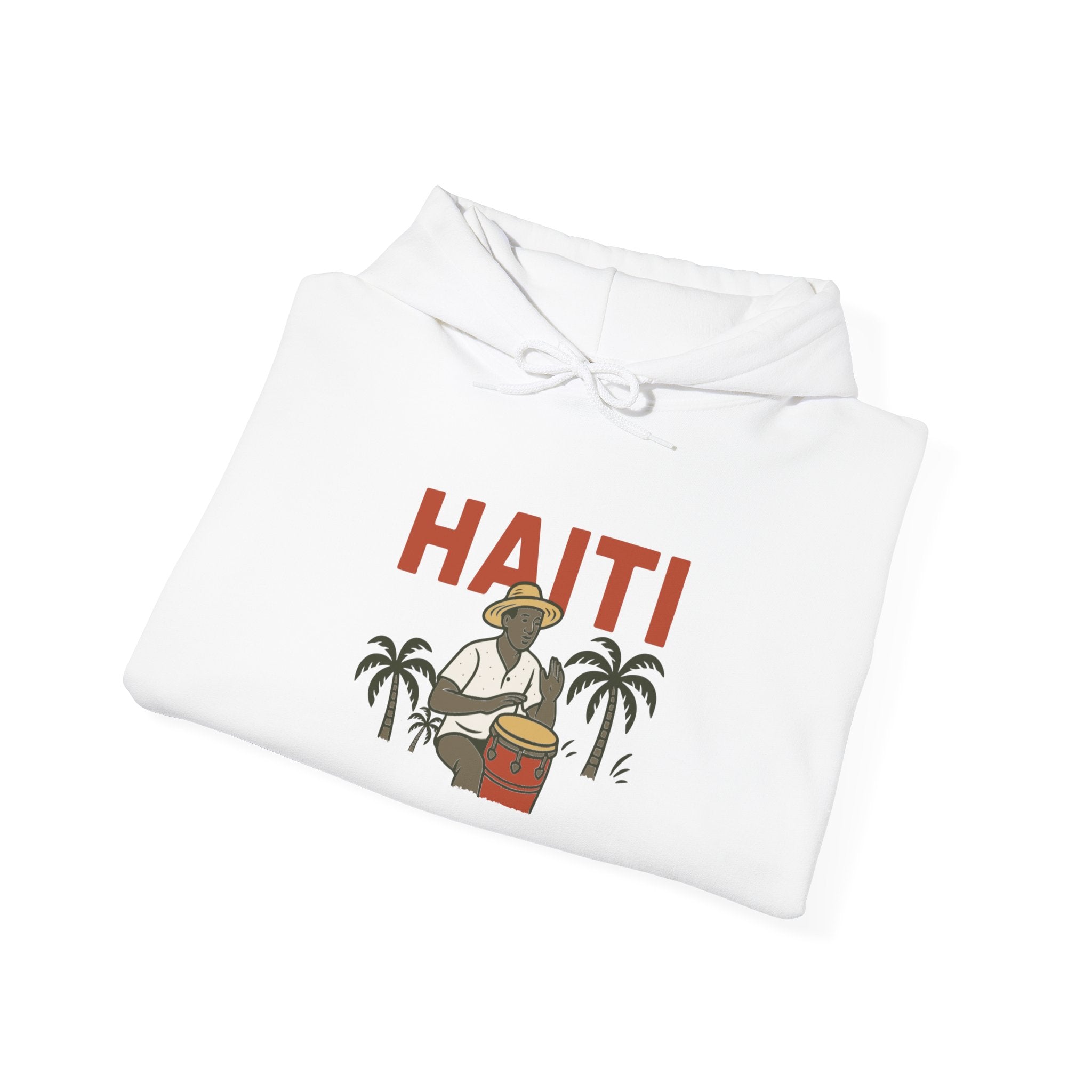 This cozy unisex hoodie blends comfort with cultural pride, featuring a serene tropical scene where the word Haiti rises above earthy palms and twin coconut trees. At its heart, a proud Haitian farmer stands with a basket in hand — honoring the strength, dignity, and endurance of the working class. The design is a quiet yet powerful reminder that the land is sacred, and our resilience is rooted in its richness.